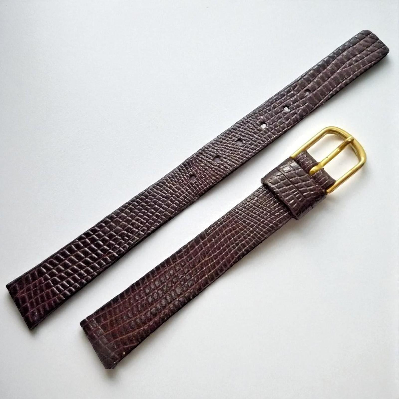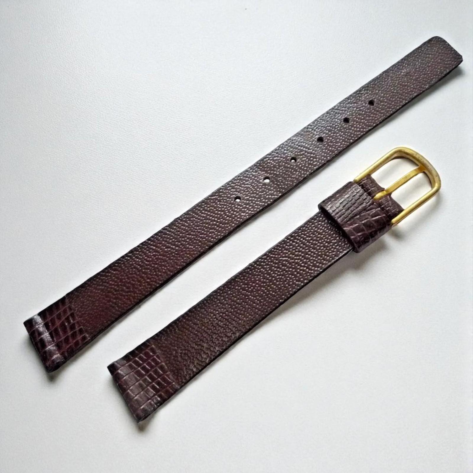 12mm Dark Brown Faux Leather Lizard Grain Watch Strap - Gold Buckle