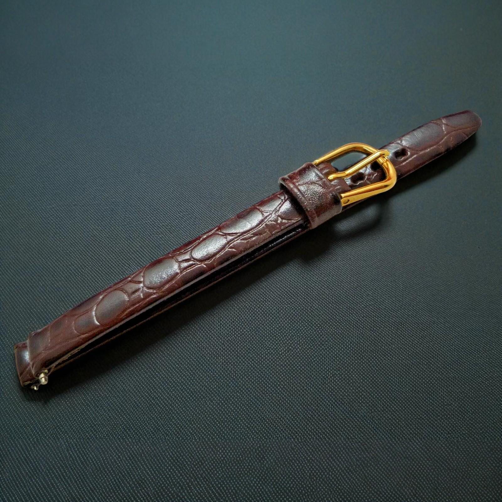 Vintage Apollo of GT Britain Brown Leather Watch Strap – 8mm Croc-Embossed – Gold Buckle – New Old Stock (NOS) 1970s–1980s – Unused Vintage Accessory
