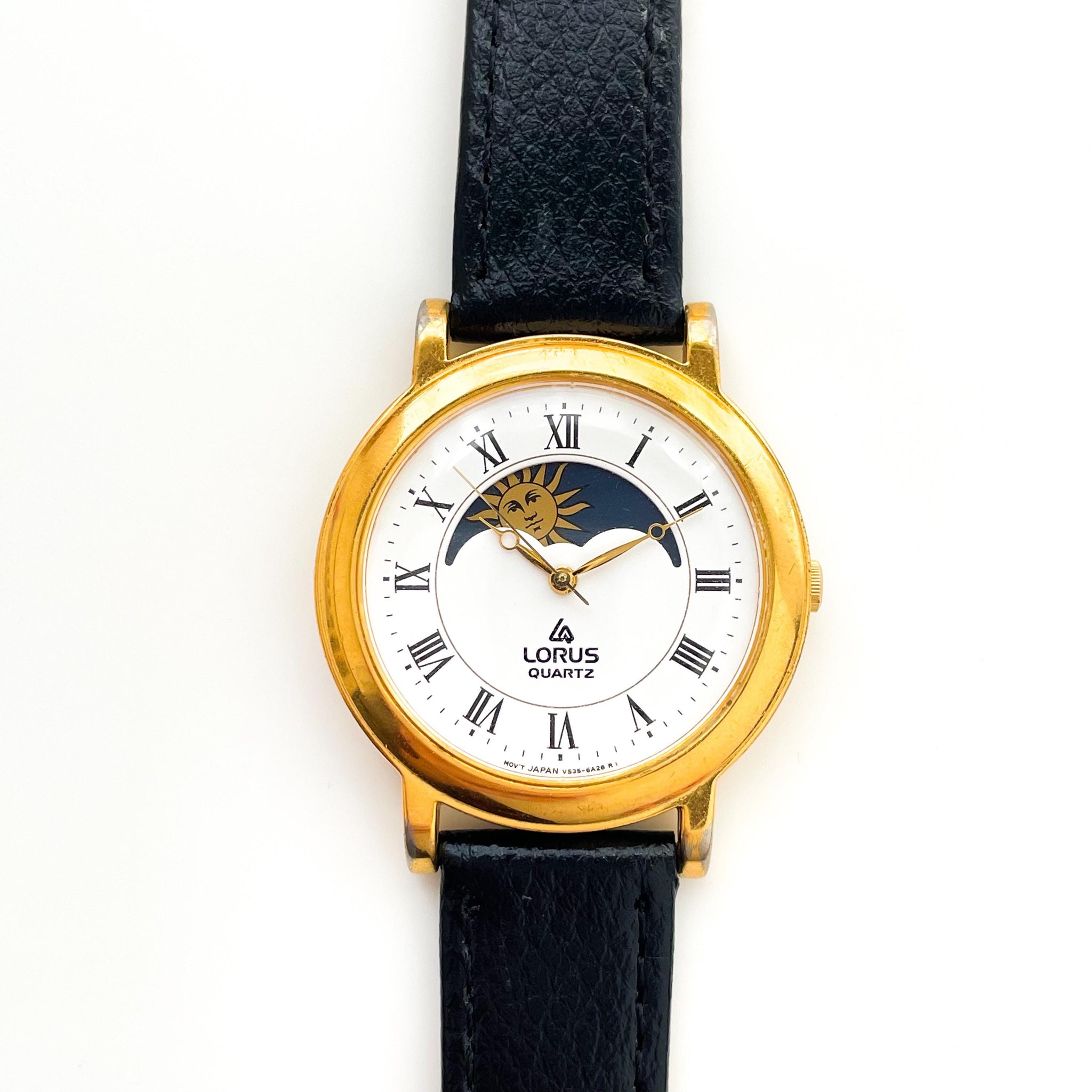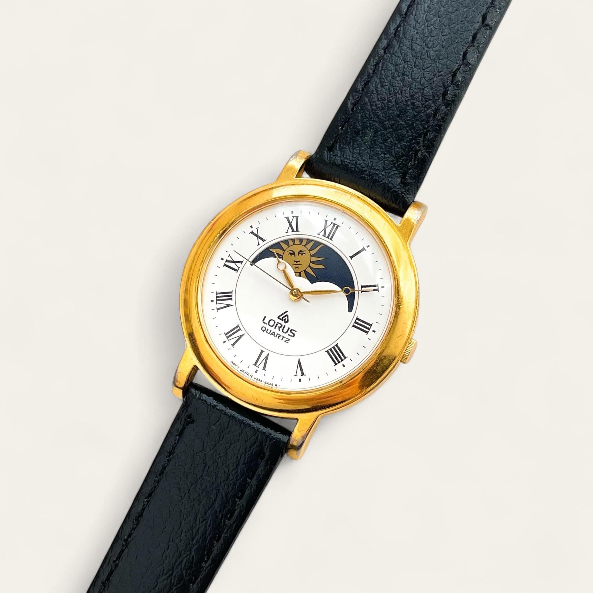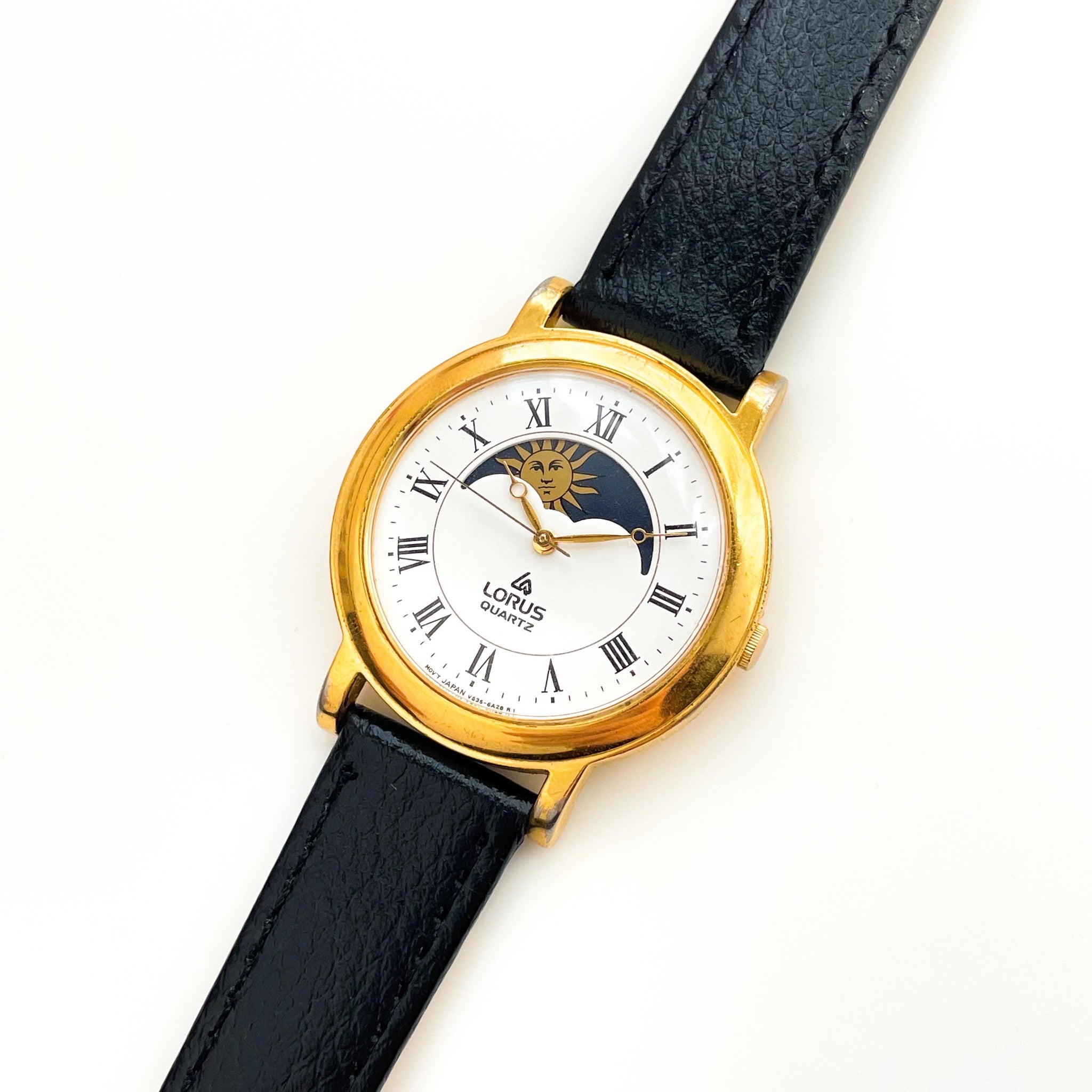 Unisex Lorus (by Seiko) sun & moon watch with black leather strap