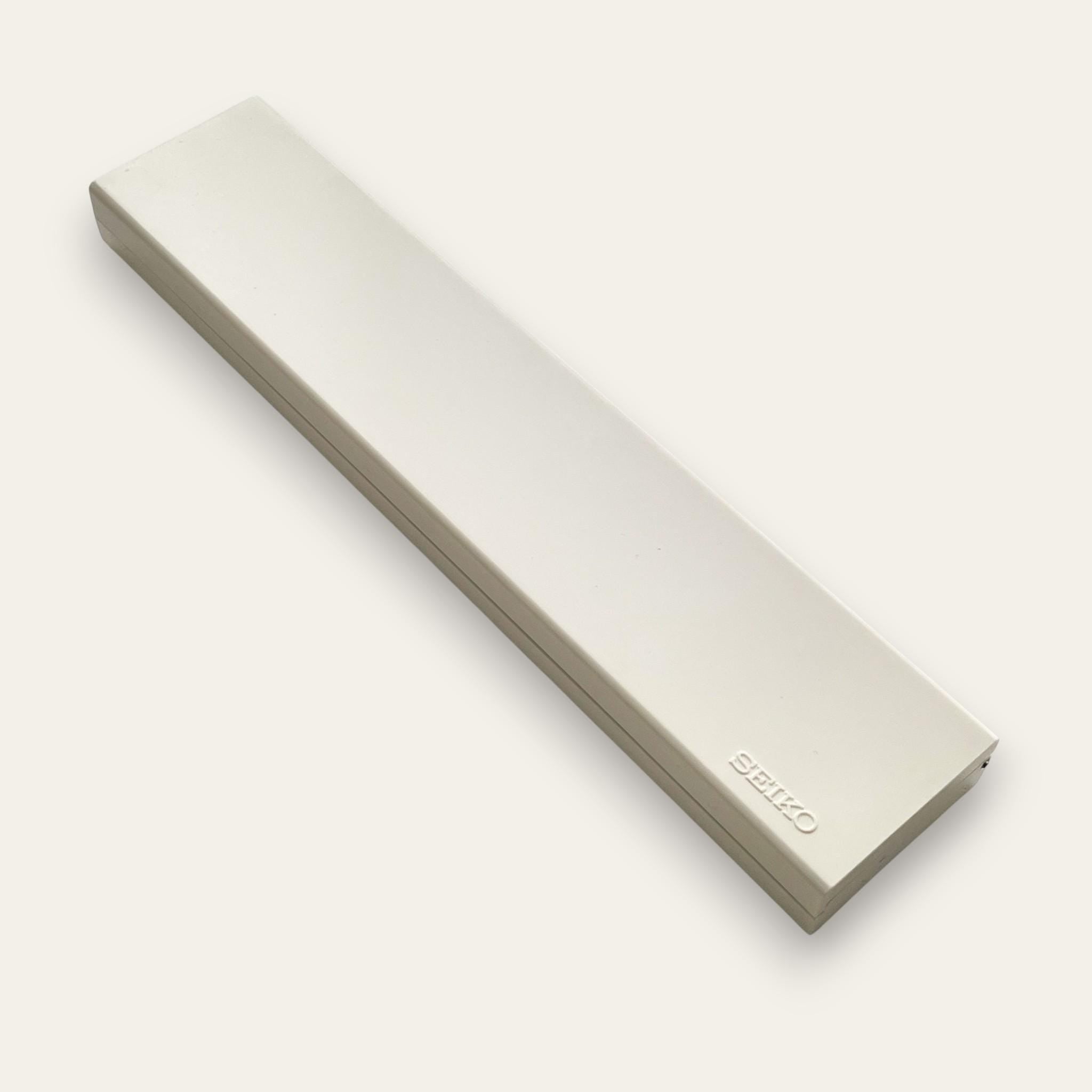 New old stock, unworn example with original Seiko label, papers and box. Stored since the 1980s. Some minor traces of oxidation on the bracelet. No loss of plating, no scratches. Please see the pictures.
