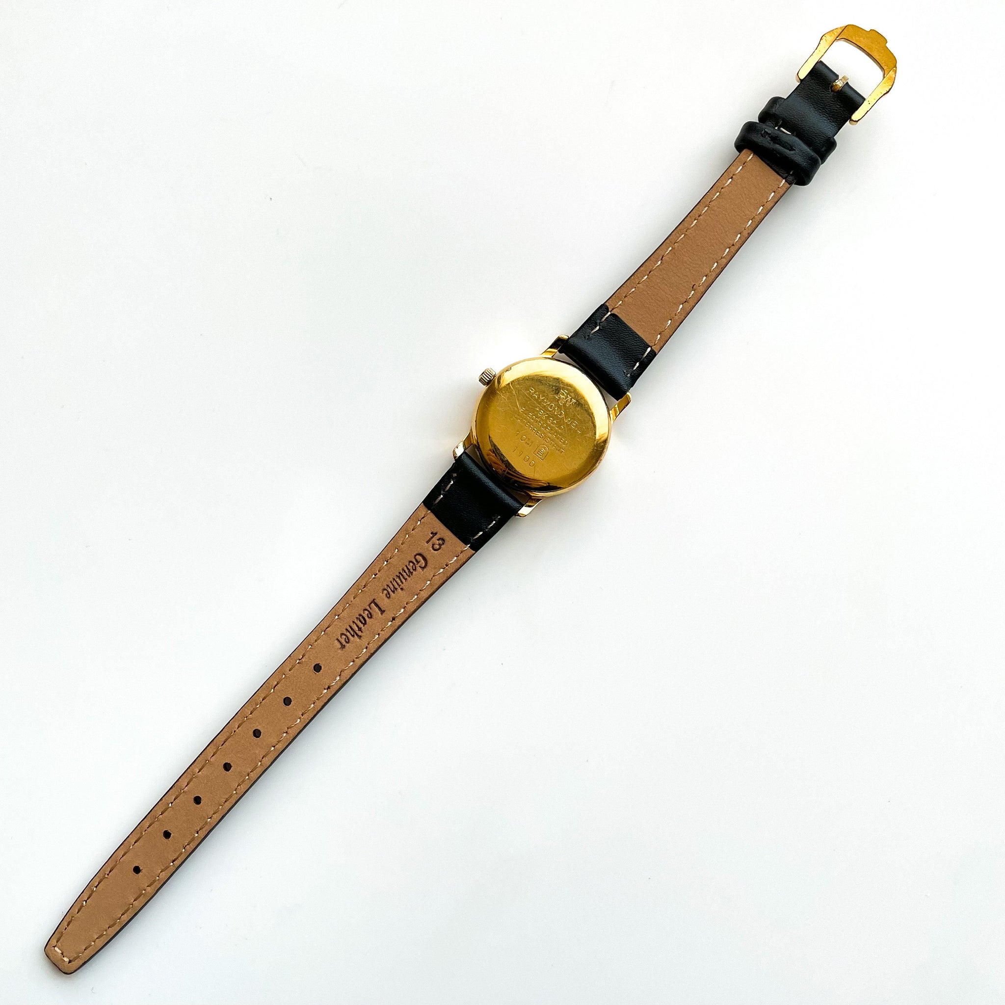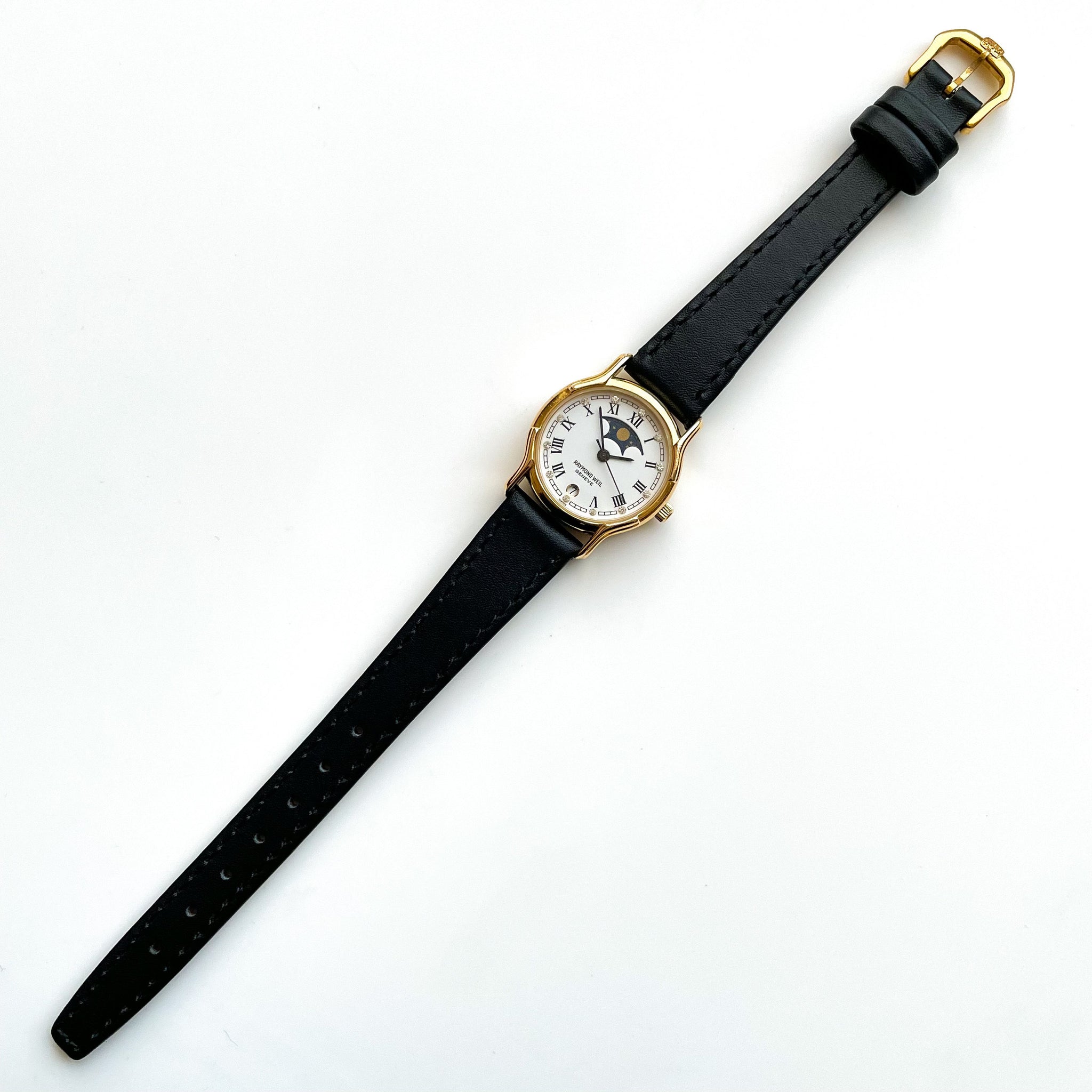 Very rare vintage Raymond Weil ladies' moon phase watch with black leather strap