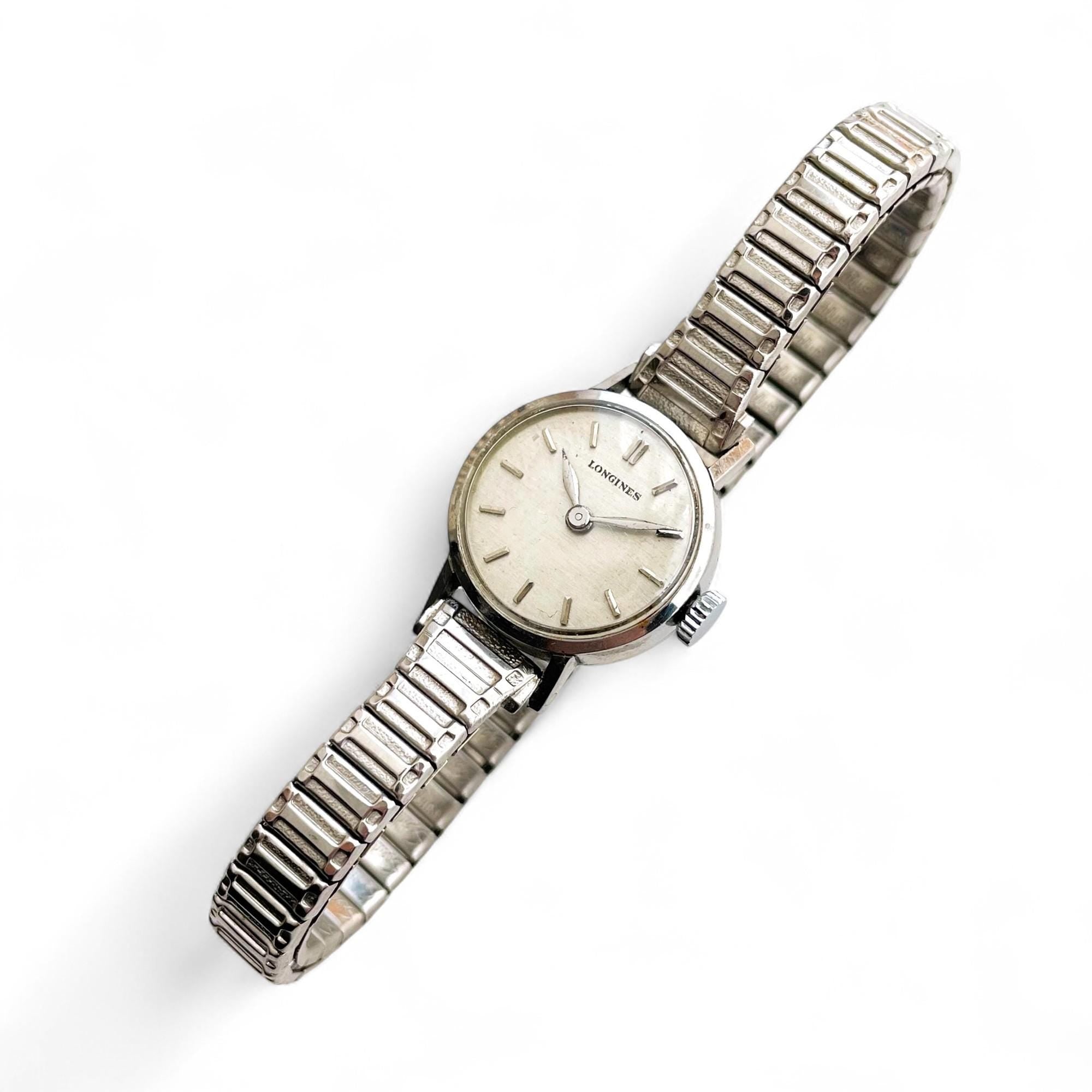 Small 1970s Longines ladies' watch featuring an expanding strap and a classic round dial—a timeless and elegant piece from the renowned Swiss watchmaker.