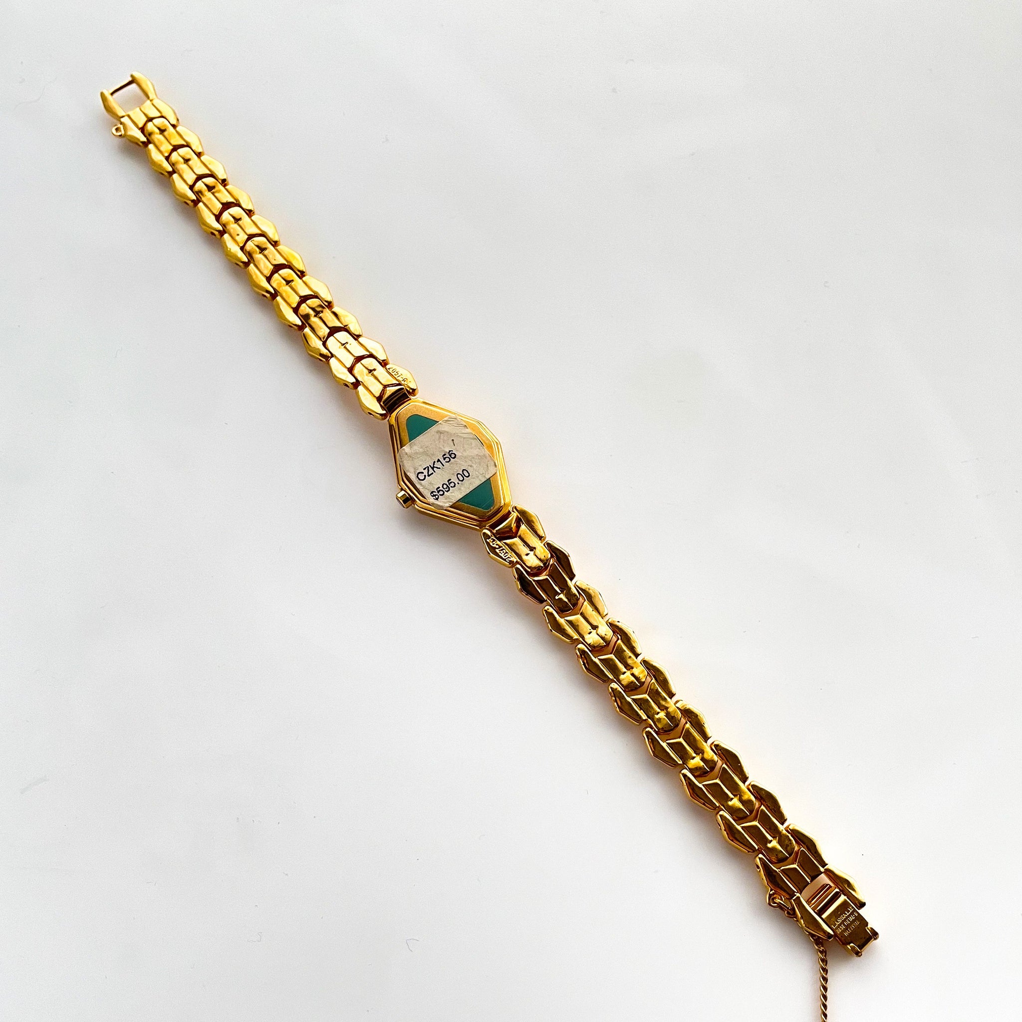 The watch is in excellent cosmetic condition. It appears to be unworn. The word "sample" is engraved on the back, indicating that it used to be a display model. Please see the pictures. The green velvet box is new.