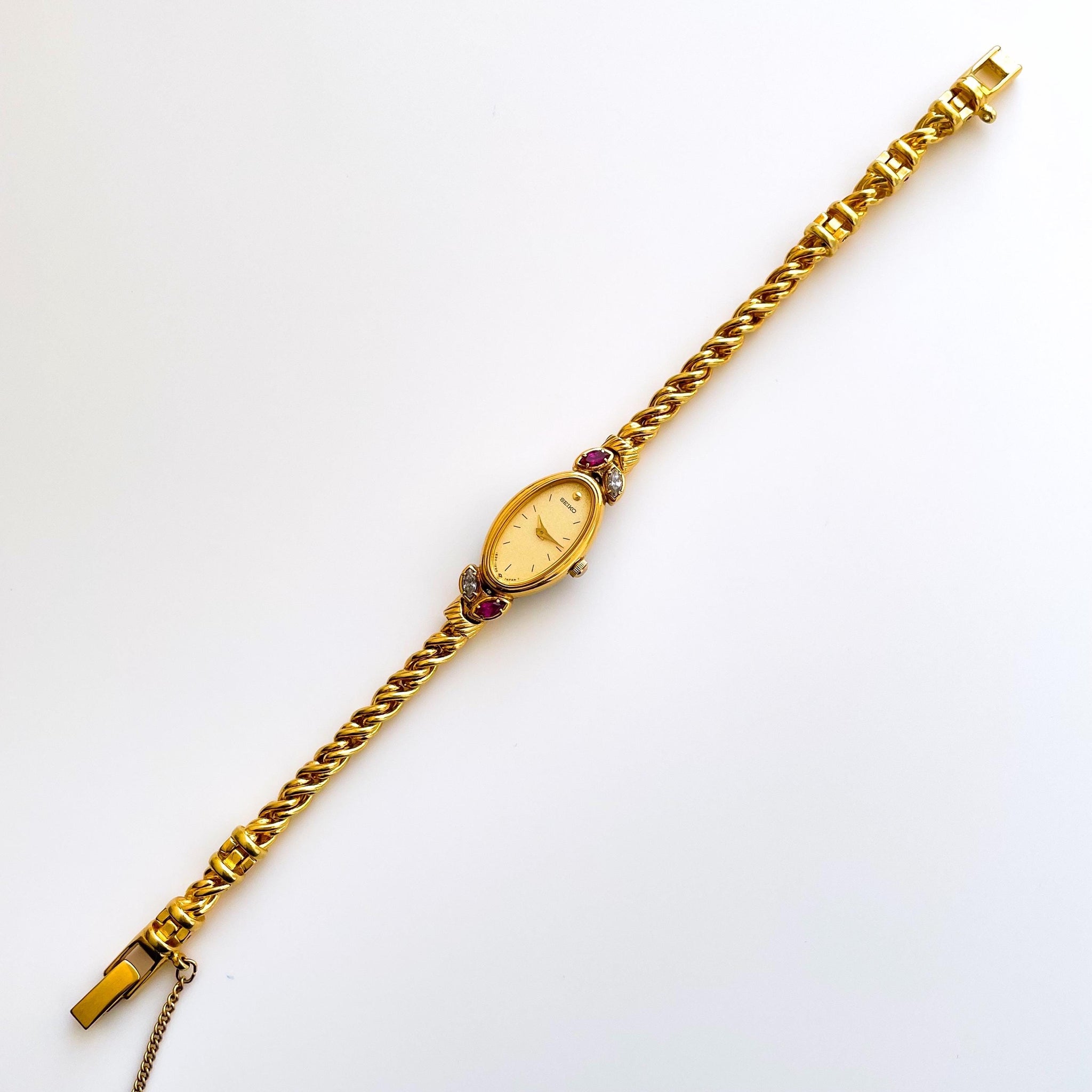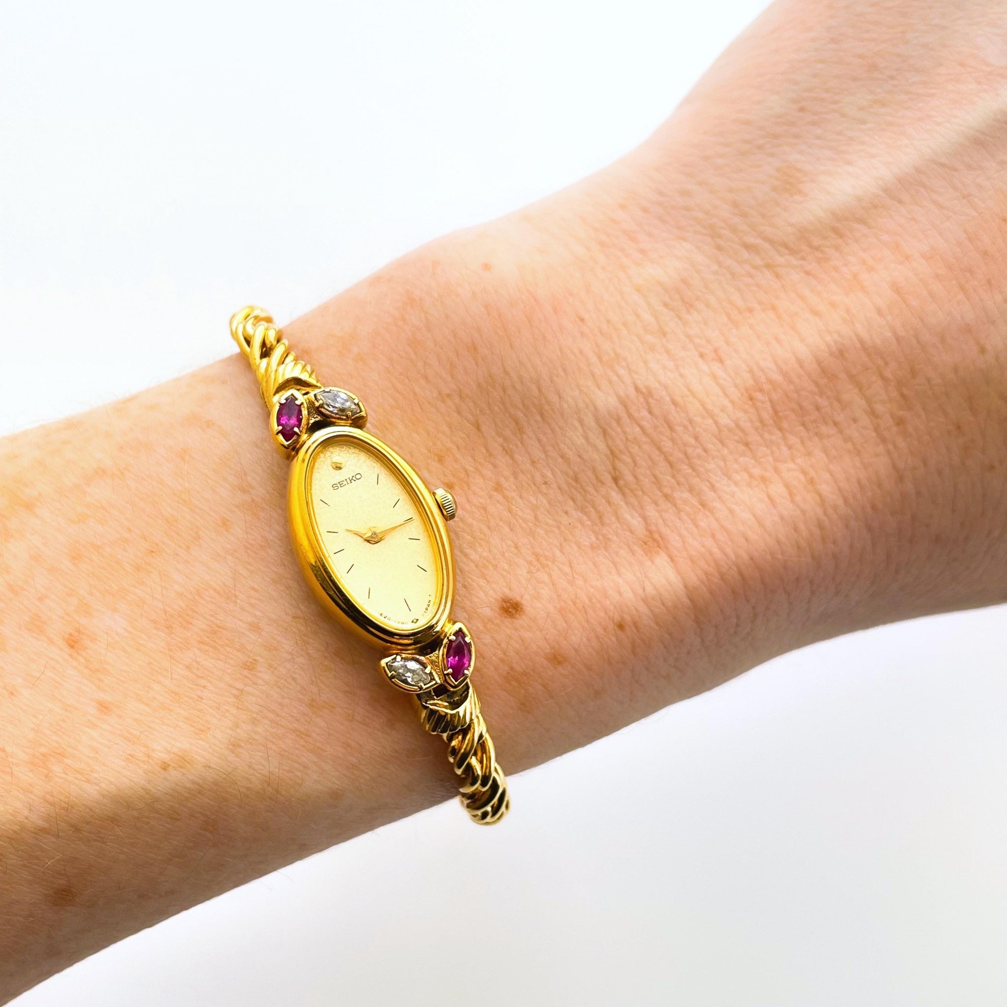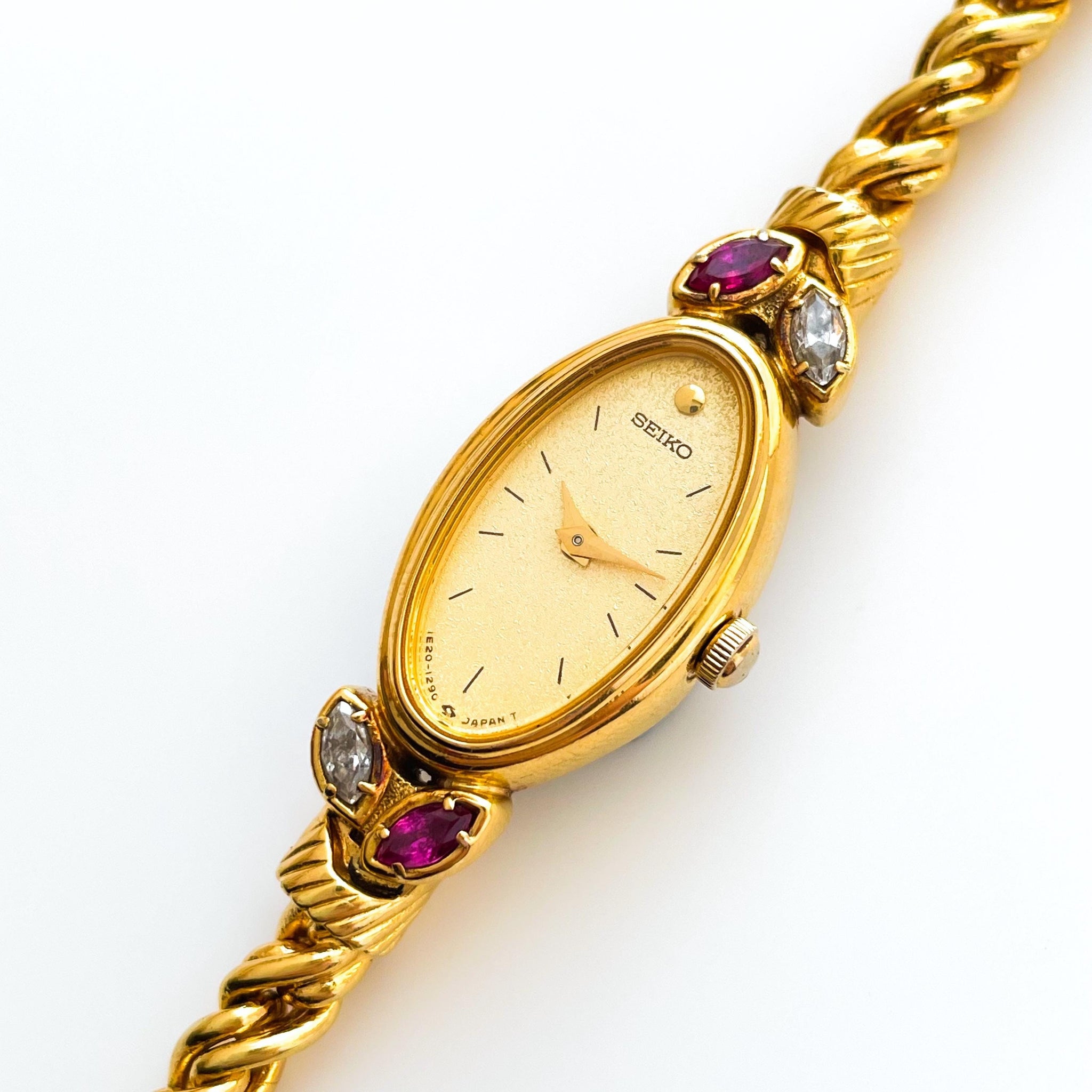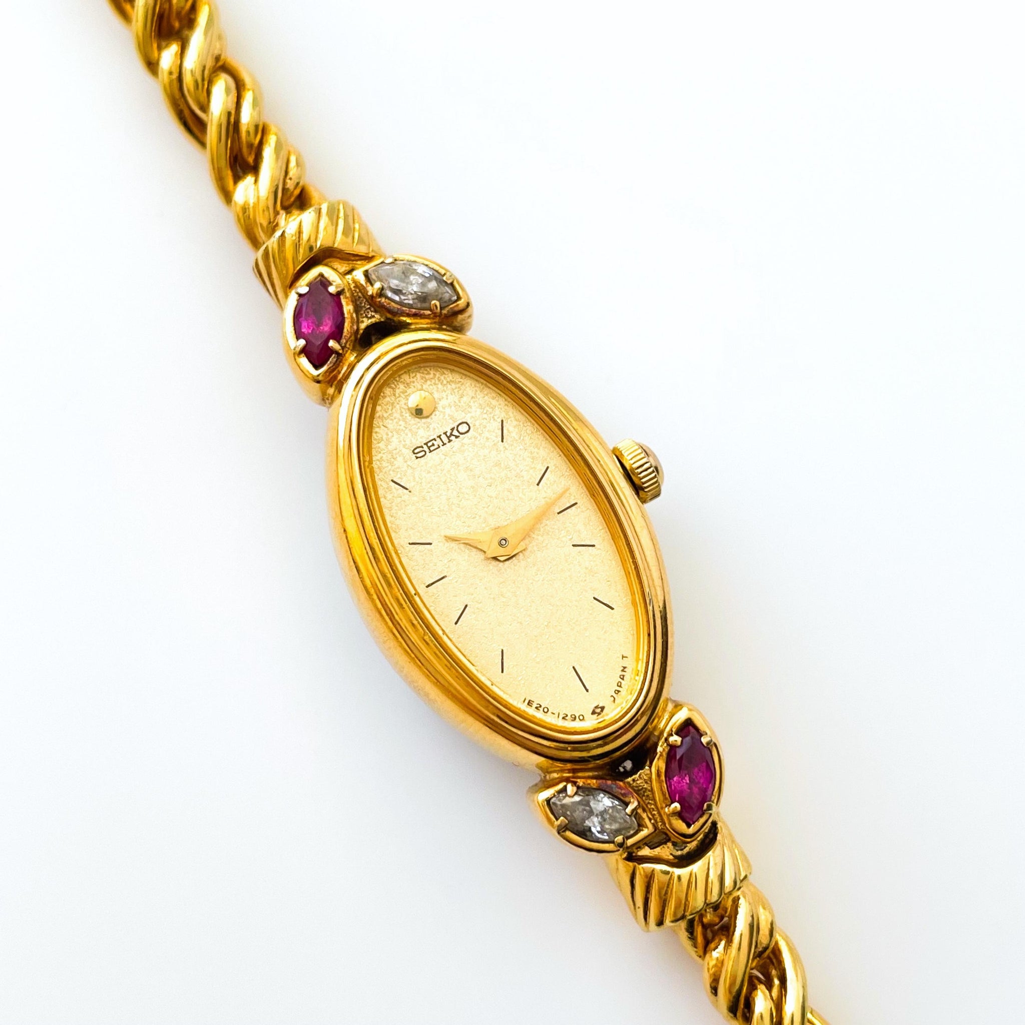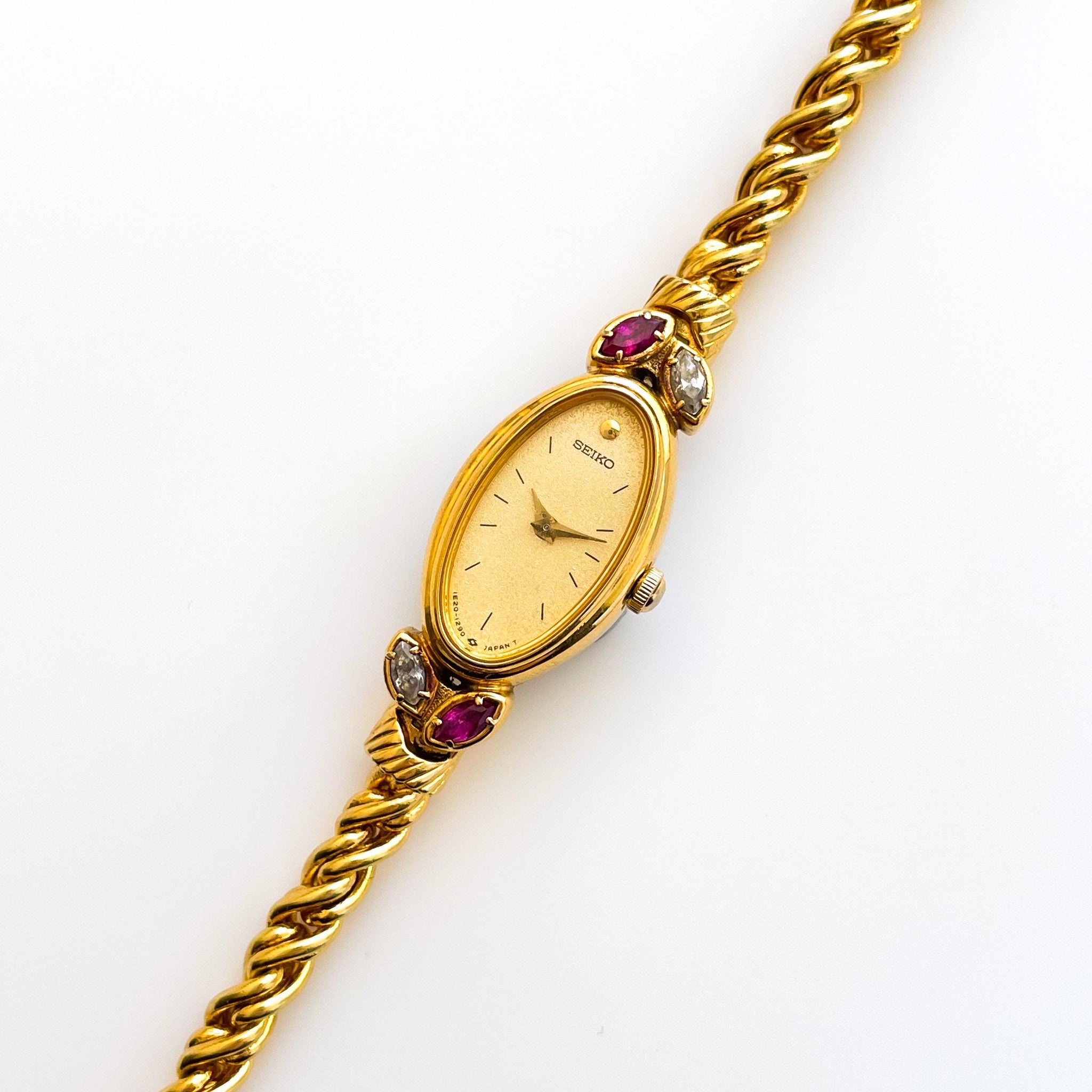 Rare 90s Gold-Plated Seiko Jewellery Quartz Watch - Tiny Dial - Rubies