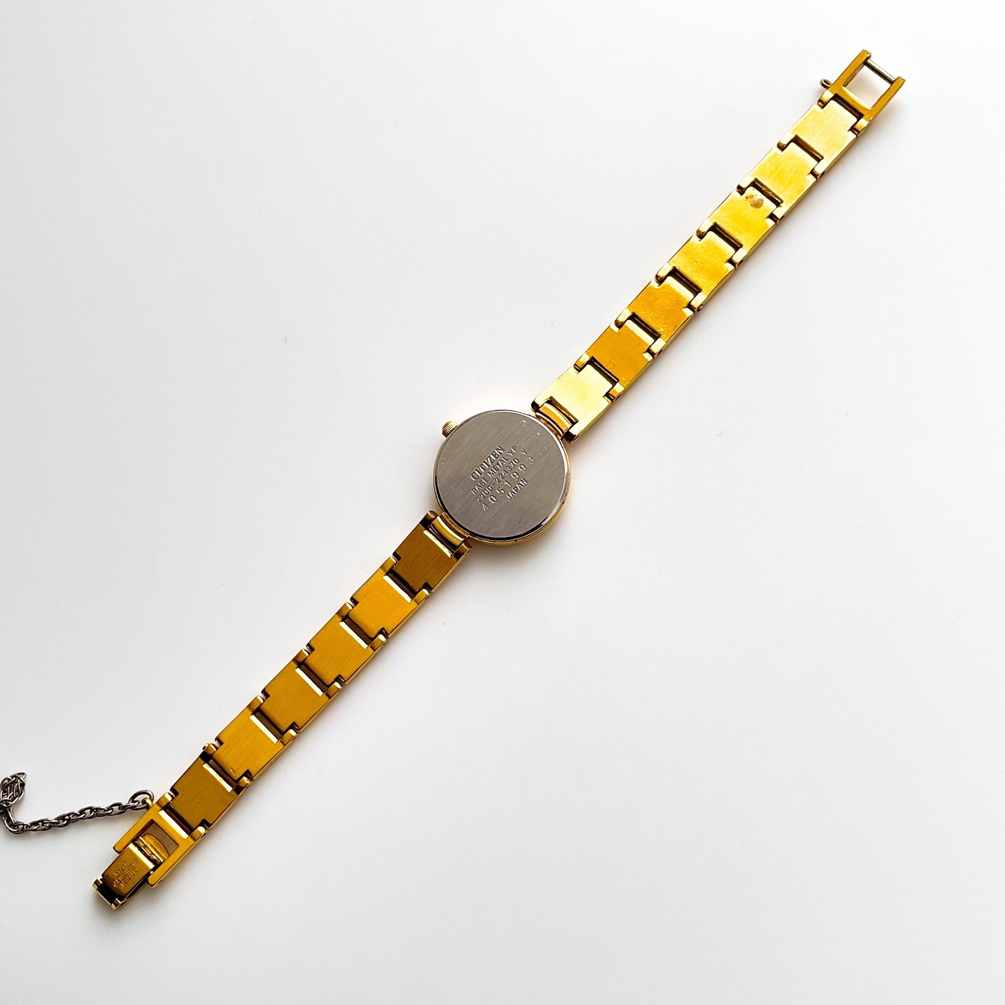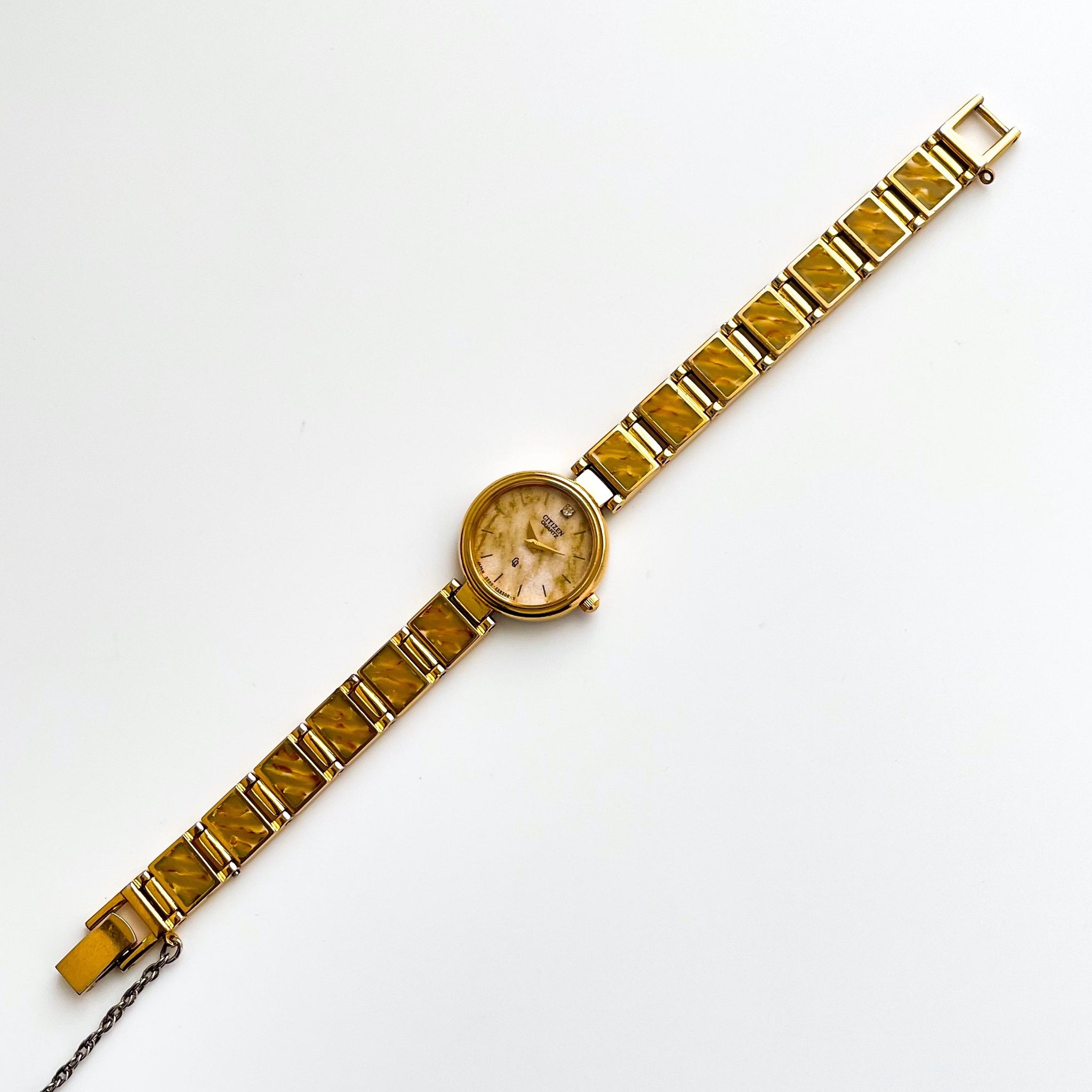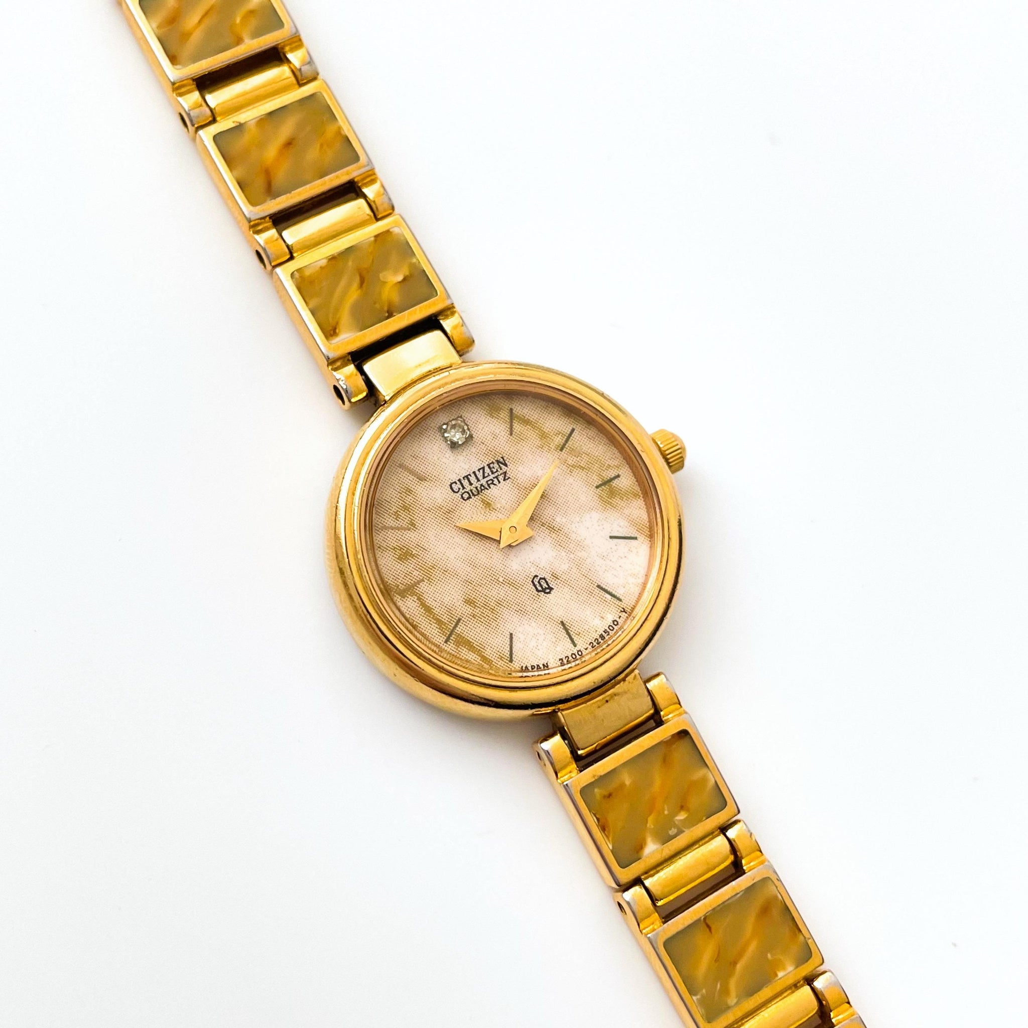 Dainty 1990s ladies' Citizen gold-plated watch, with round dial and tortoise pattern. An elegant vintage piece from the cult Japanese watchmaker.