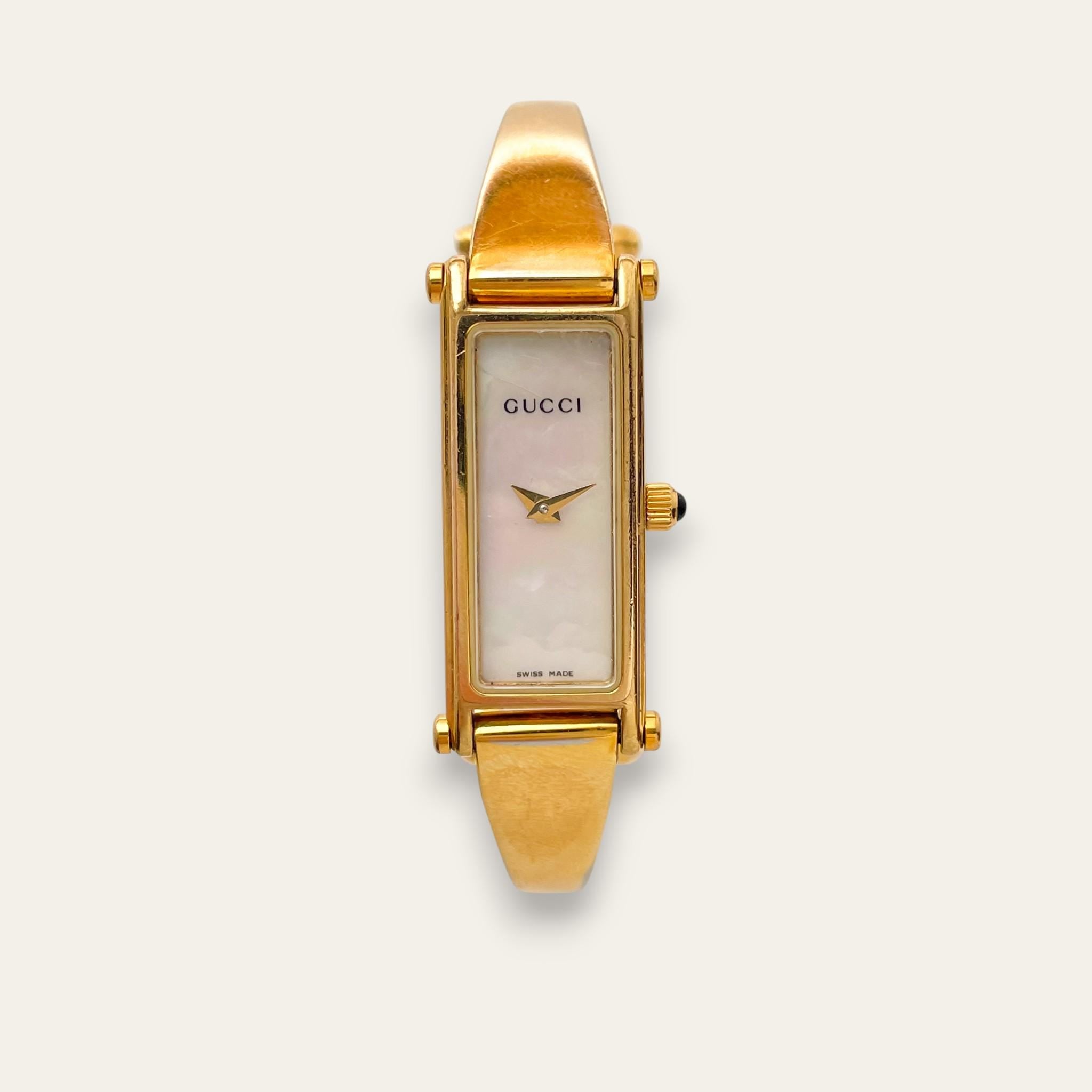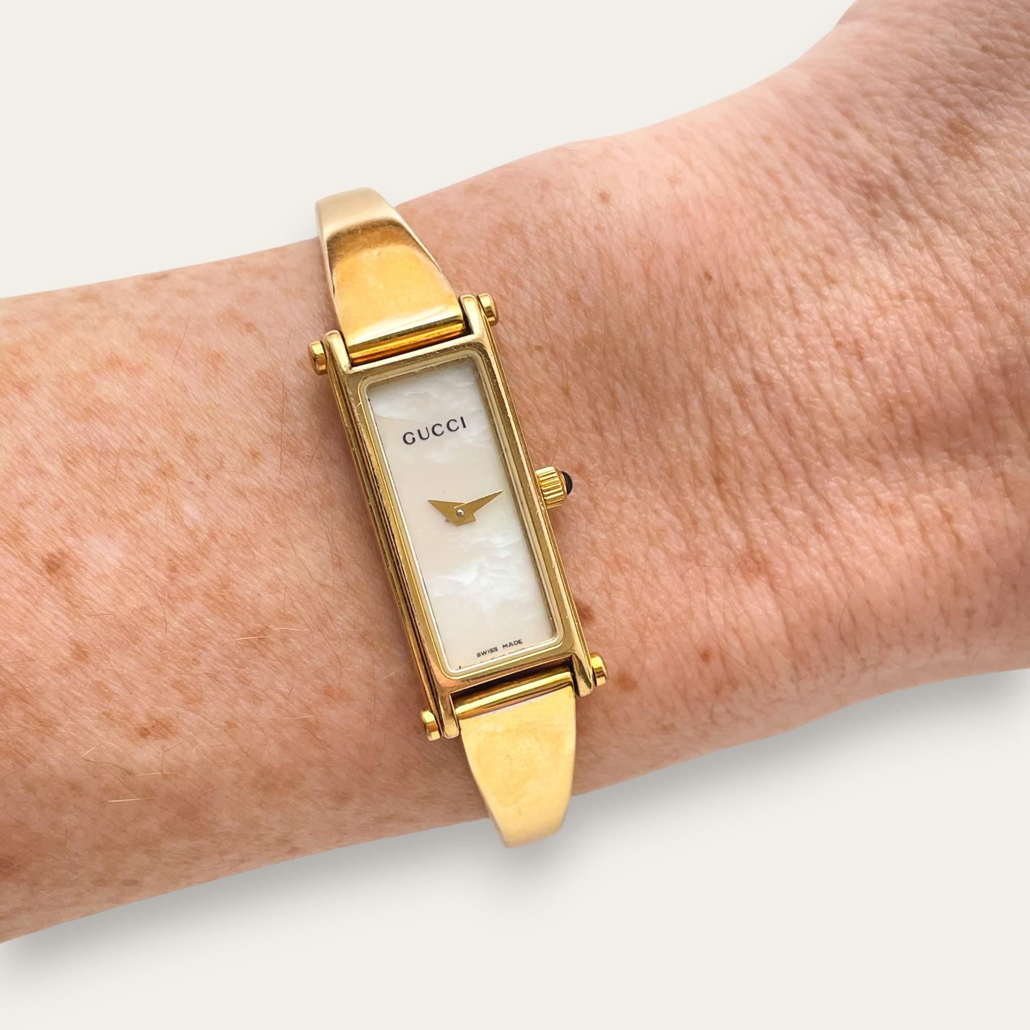 Vintage Ladies' Gold-Plated Gucci 1500L Bangle Quartz Watch - Mother of Pearl Dial