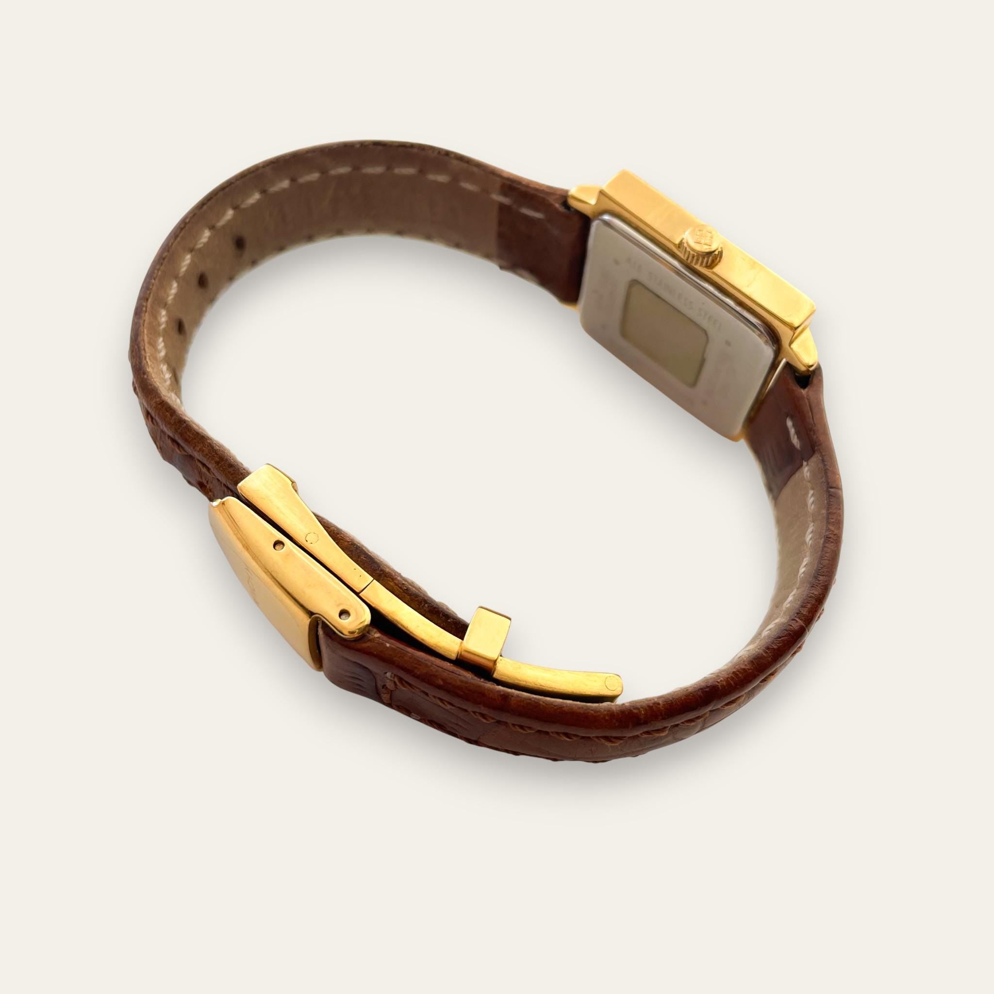 Vintage ladies' Givenchy gold-plated tank-style watch with square dial and leather strap. An elegant watch from the French designer.