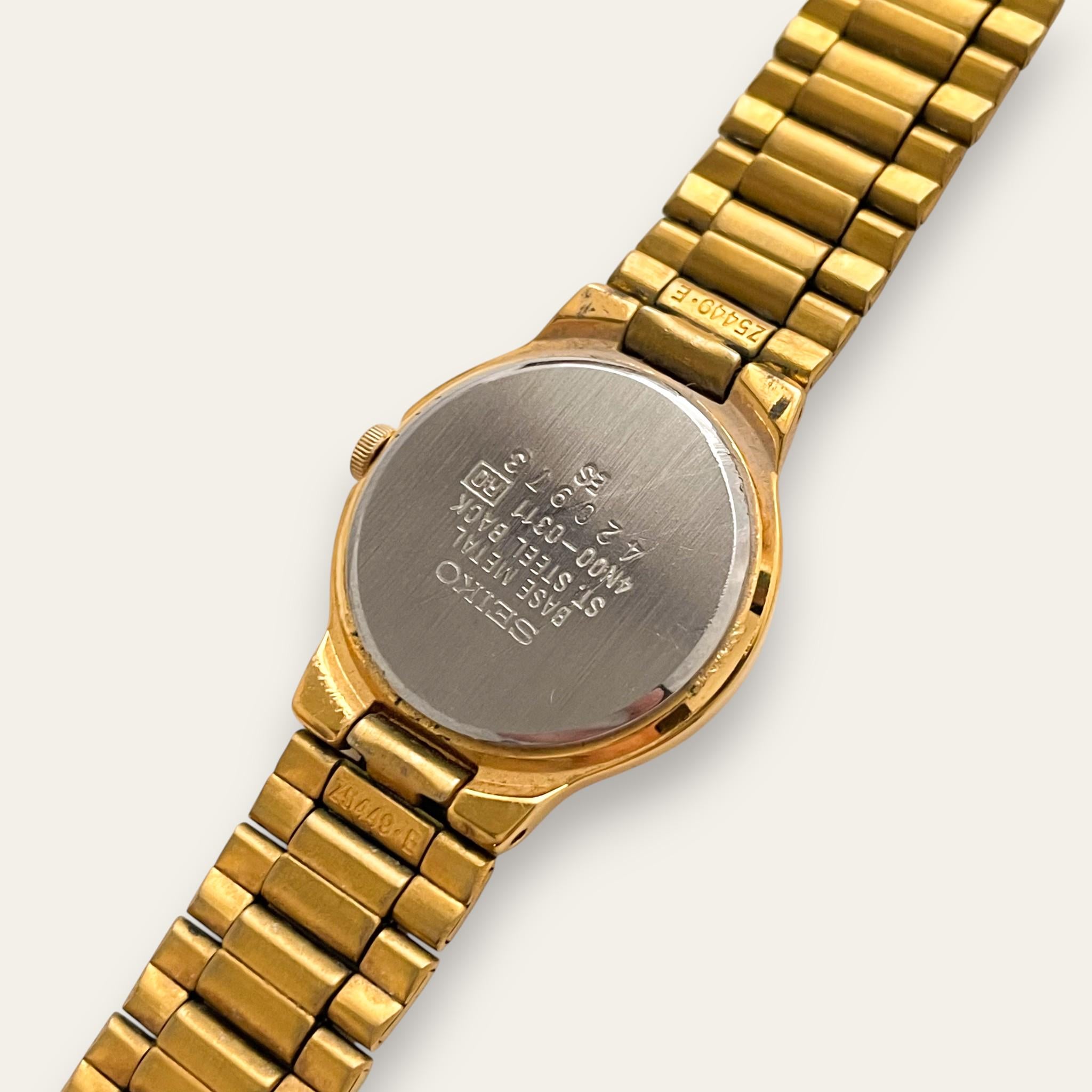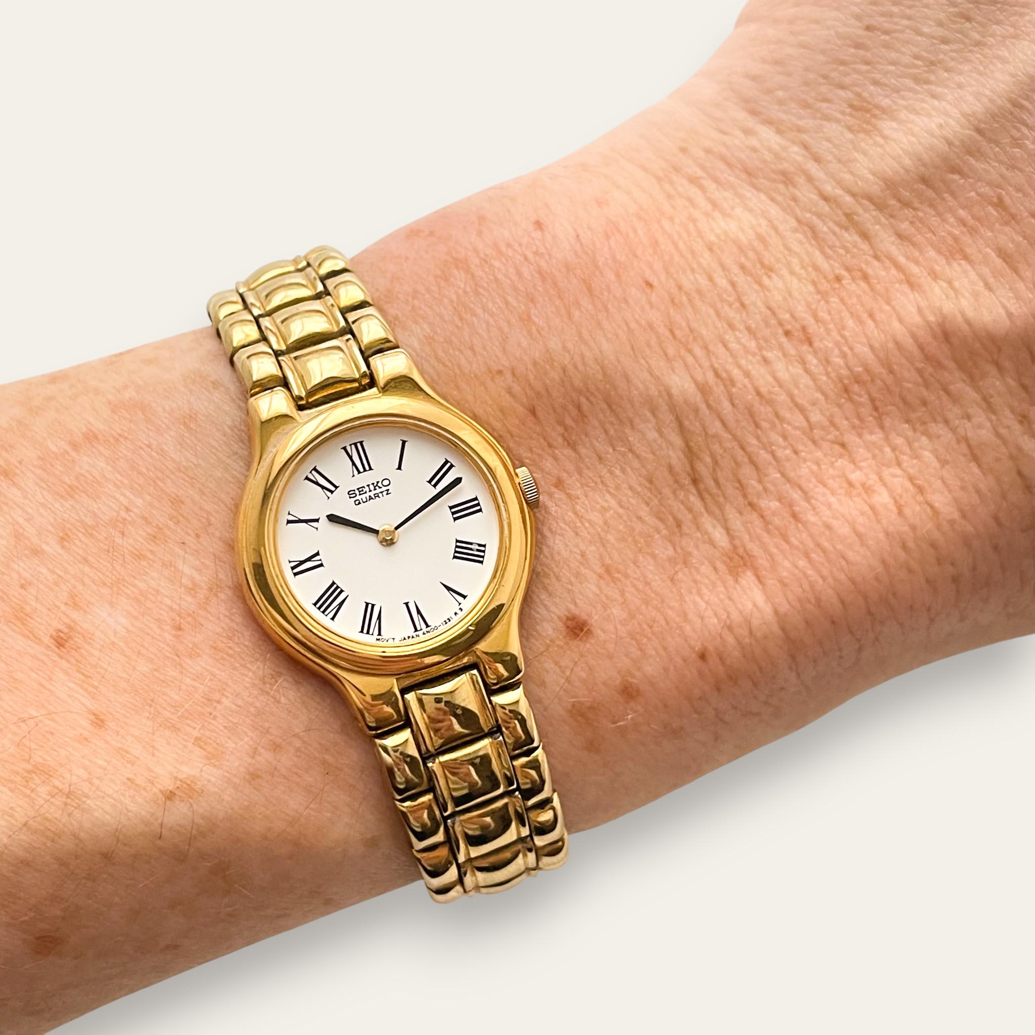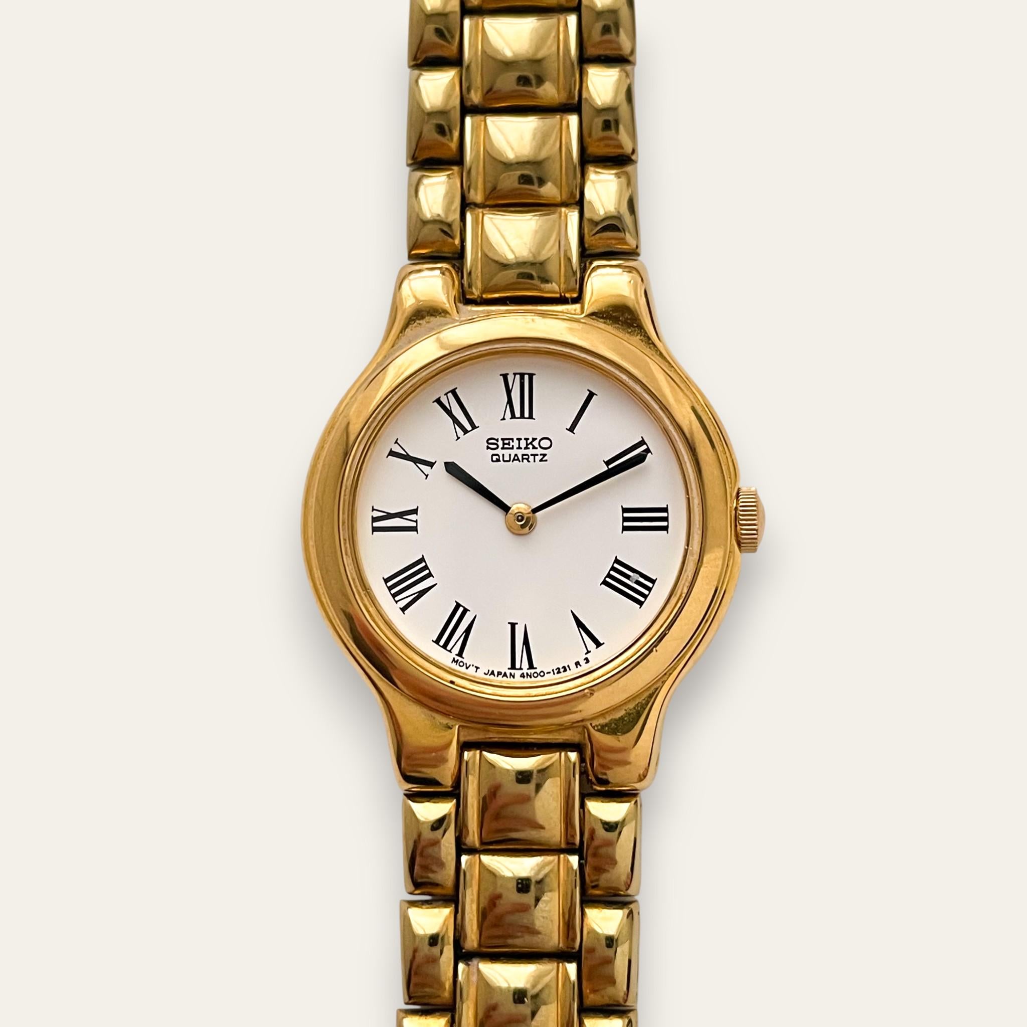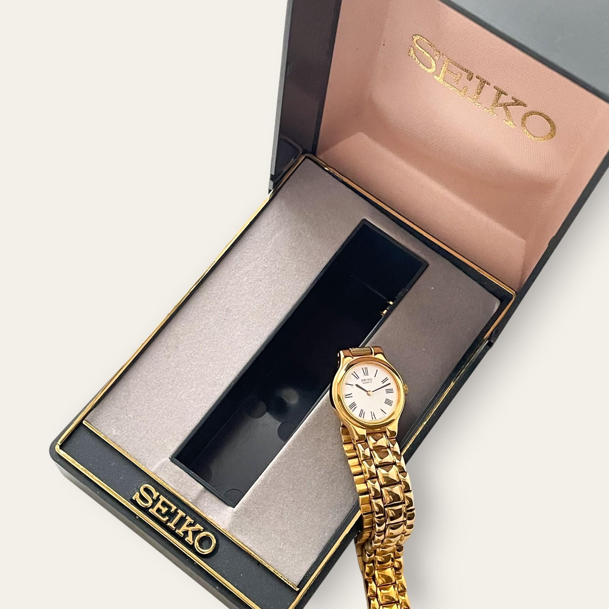 Dainty 90s ladies' Seiko watch, with round dial. An elegant vintage piece from the cult Japanese watchmaker. Comes with the original box.