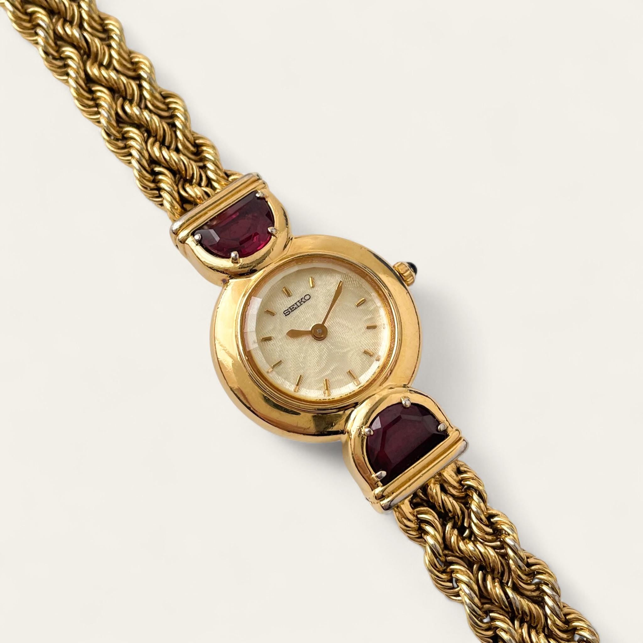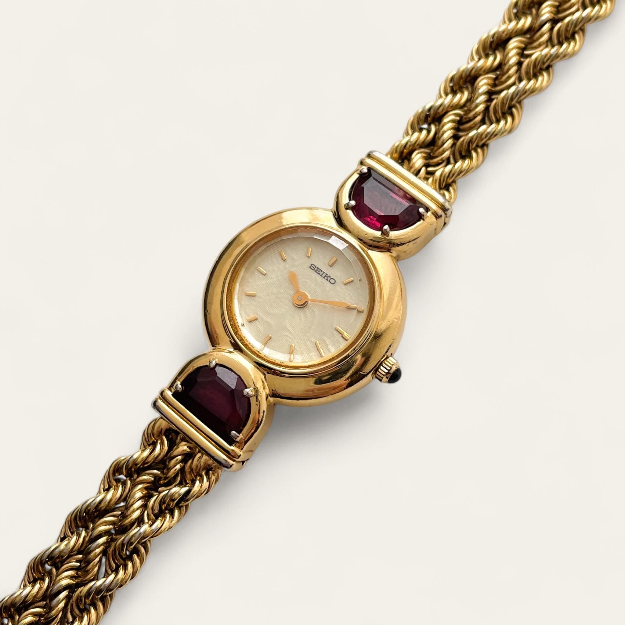 Rare 90s Gold-Plated Seiko Jewellery Quartz Watch - Tiny Dial - Rubies