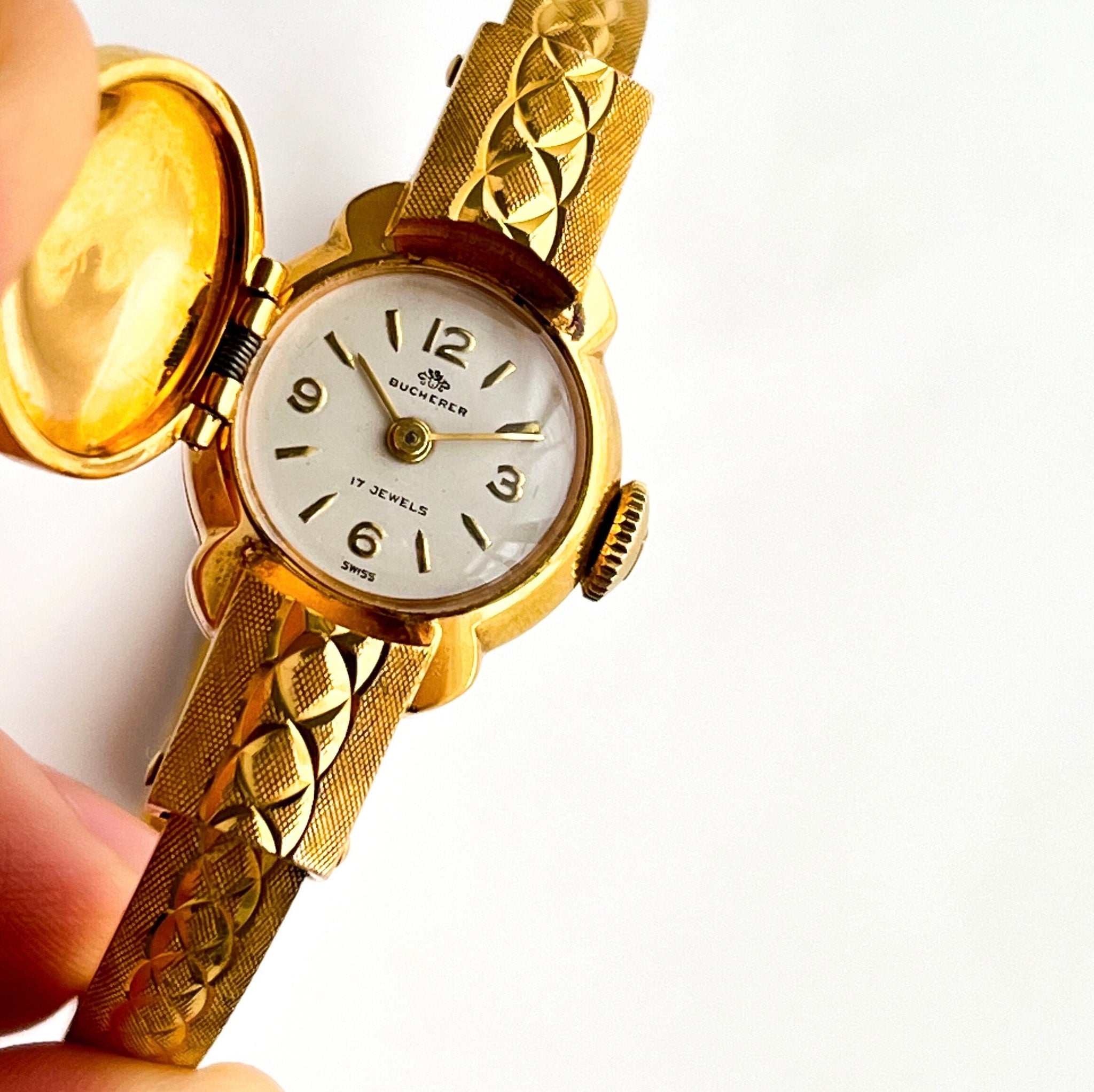 The watch is by the Swiss company Bucherer, and is signed "Bucherer 17 Jewels Swiss" on the front. A rare piece full of history and beauty.