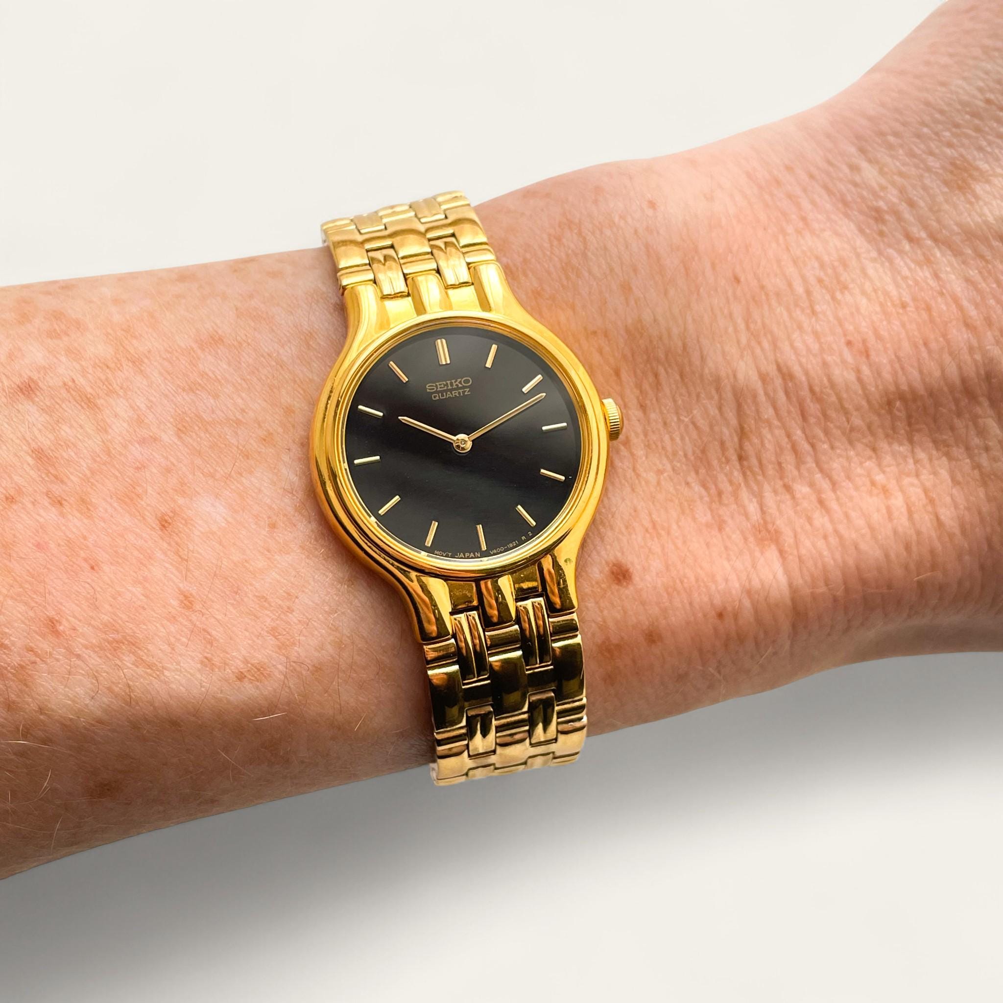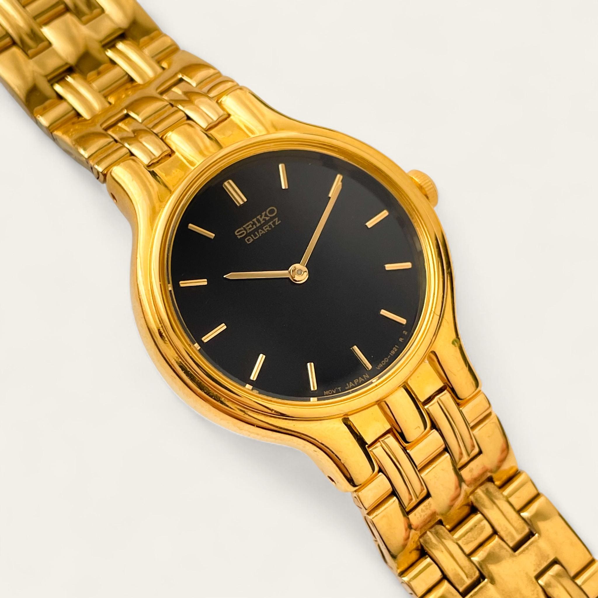 Vintage 90s Gold-Plated Seiko Asymmetrical Quartz Watch - Black Dial