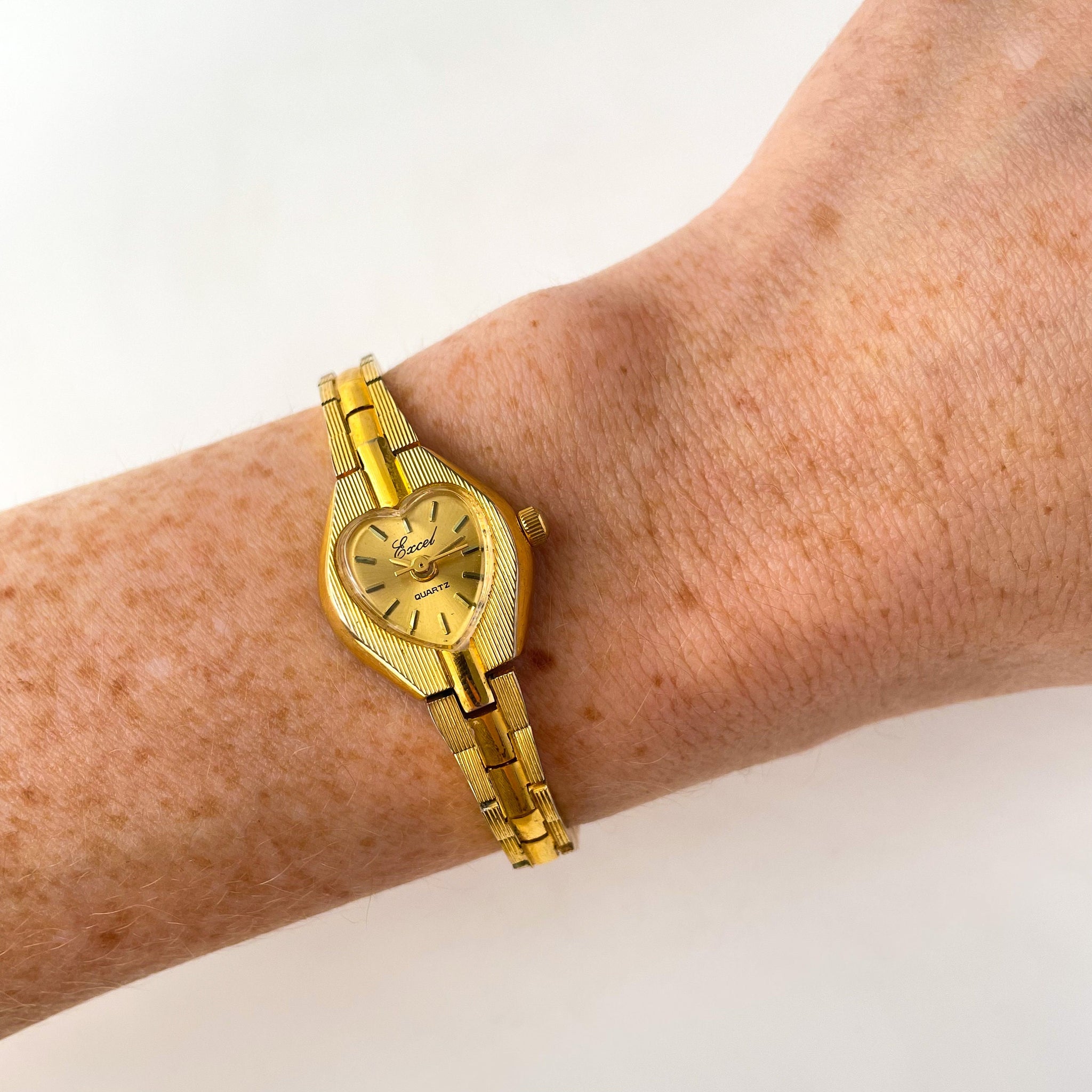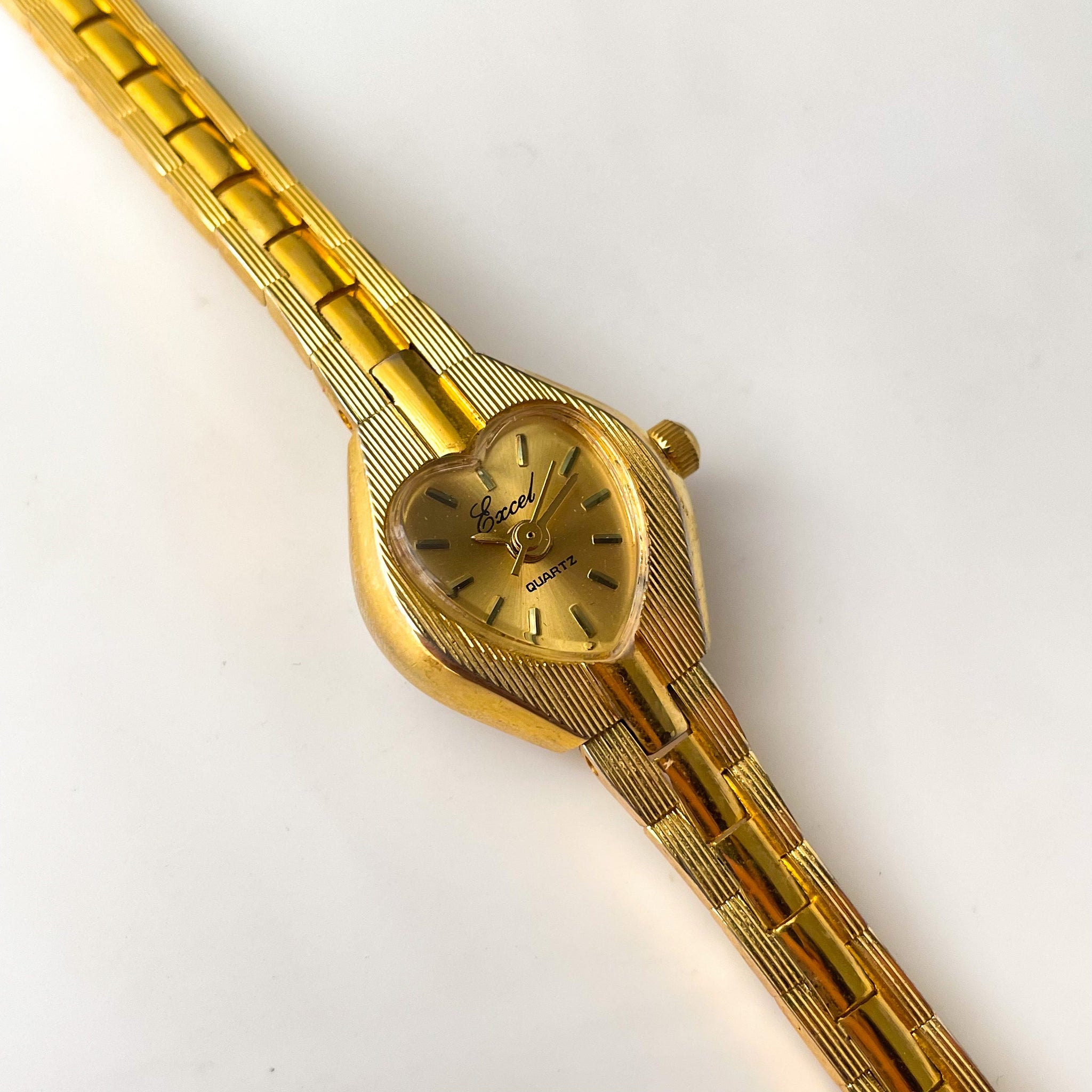 Vintage Ladies' Excel gold-plated watch, with lovely heart-shaped dial and jewellery clasp.