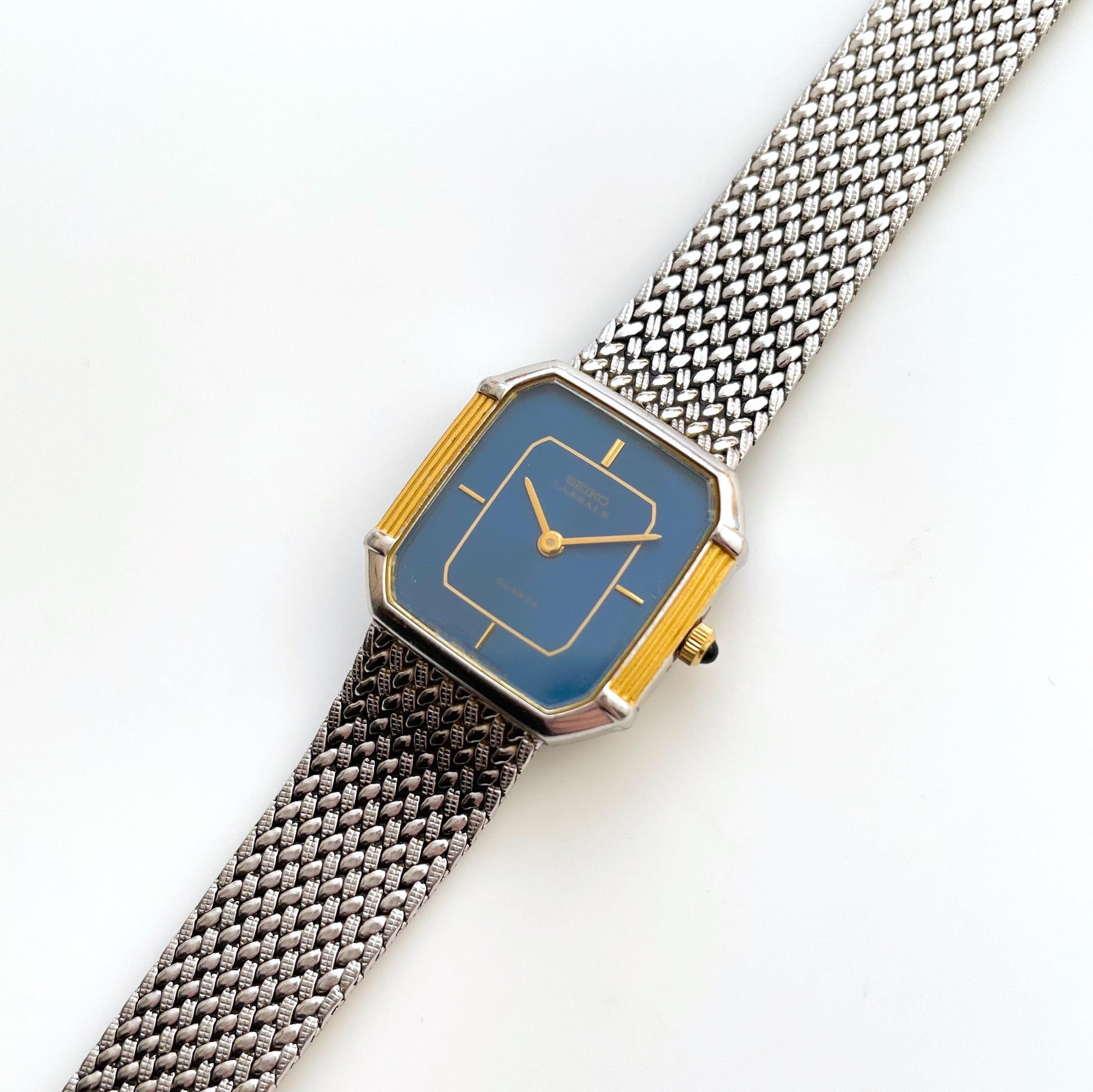 Dainty vintage ladies' Seiko Lassale (Seiko's high-end ladies' collection) gold-plated watch, with metallic blue dial, mesh bracelet and cabochon crown. An elegant vintage piece from the cult Japanese watchmaker.